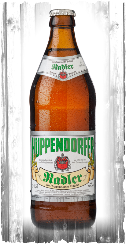 Vollbier küsst Huppendorfer Zitronenlimonade. Besonders praktisch in den warmen Sommermonaten ist das Huppendorfer Radler aus der Flasche. Die perfekte Erfrischung, spritzig und nicht zu süß!